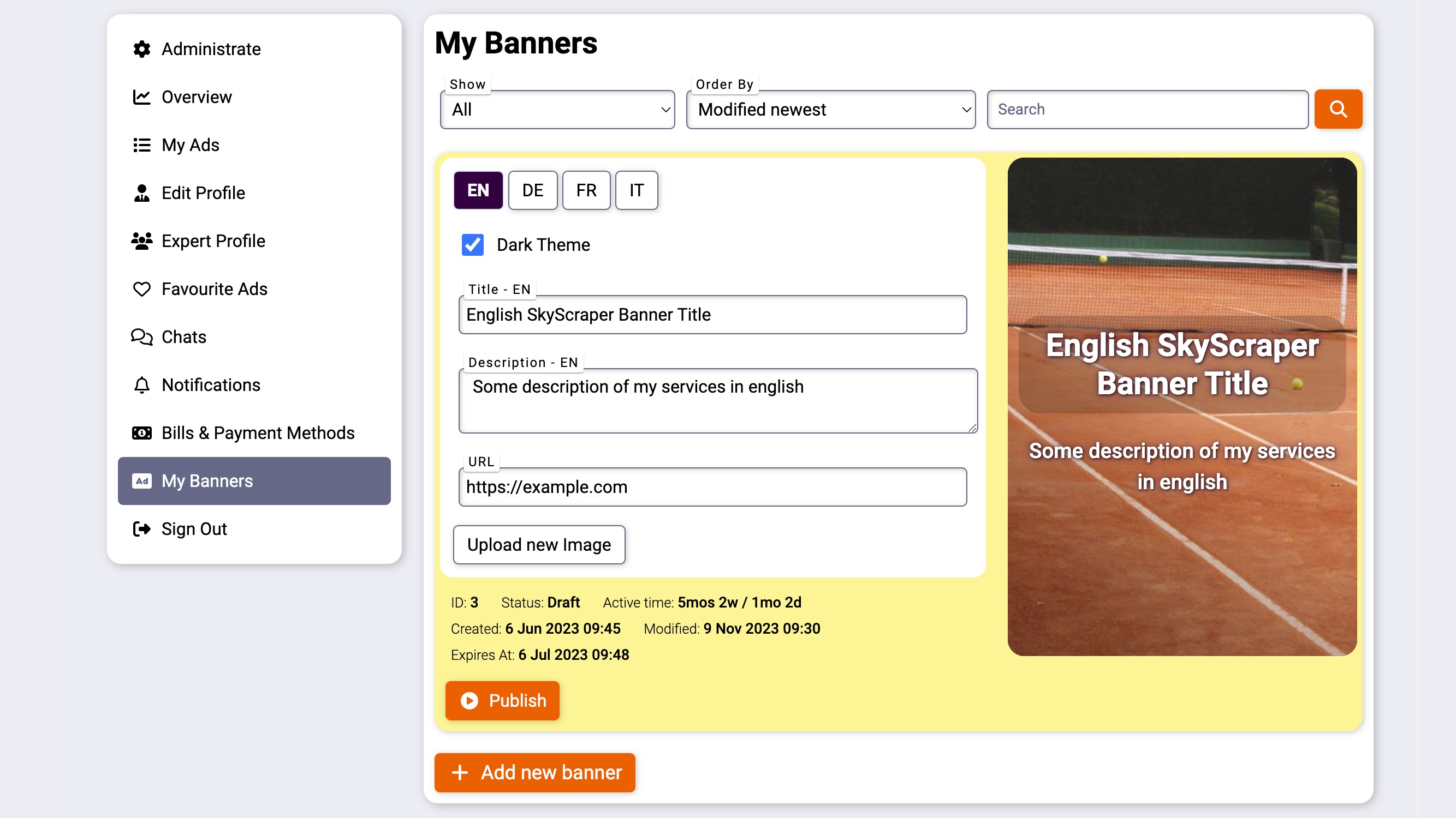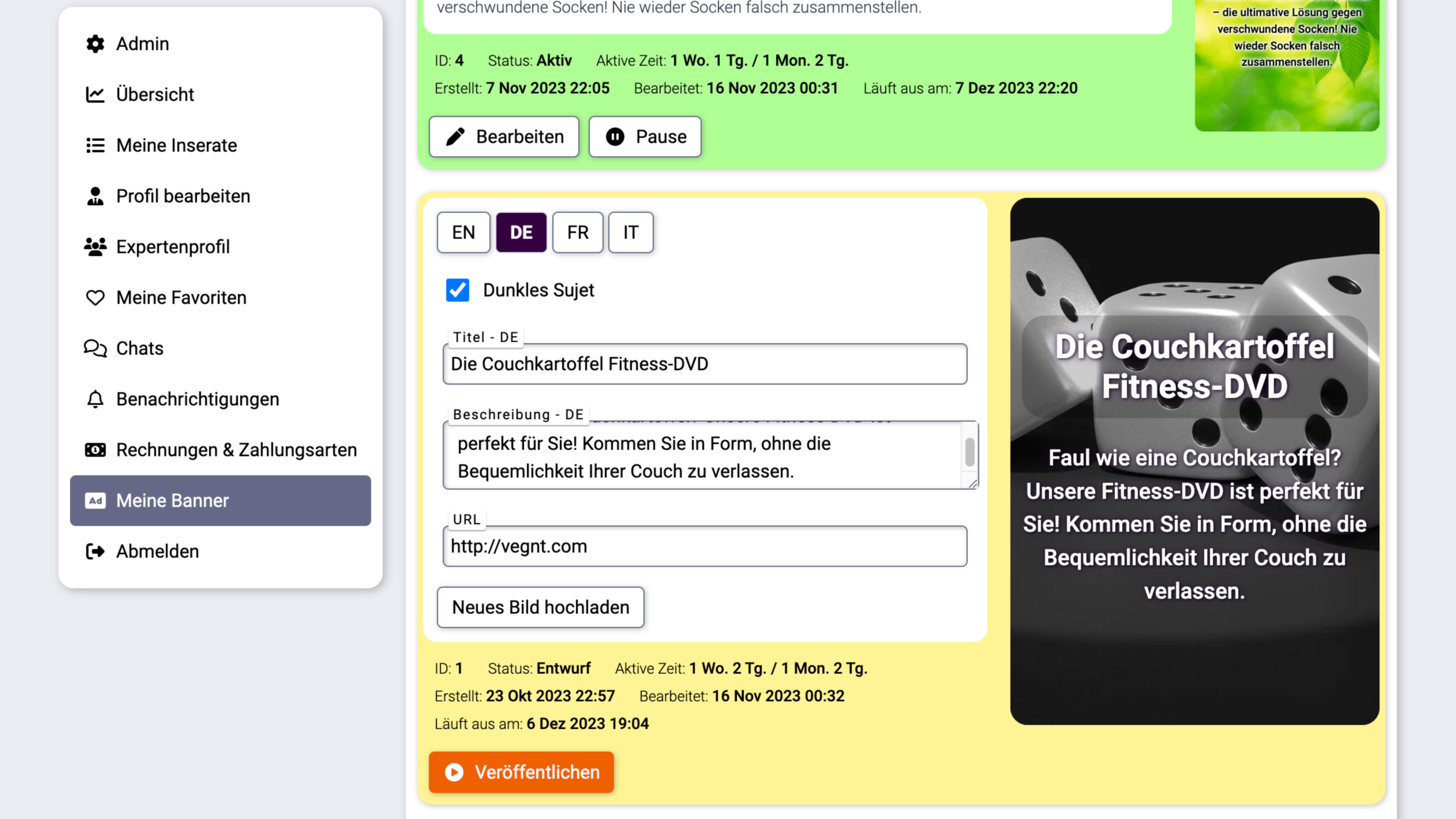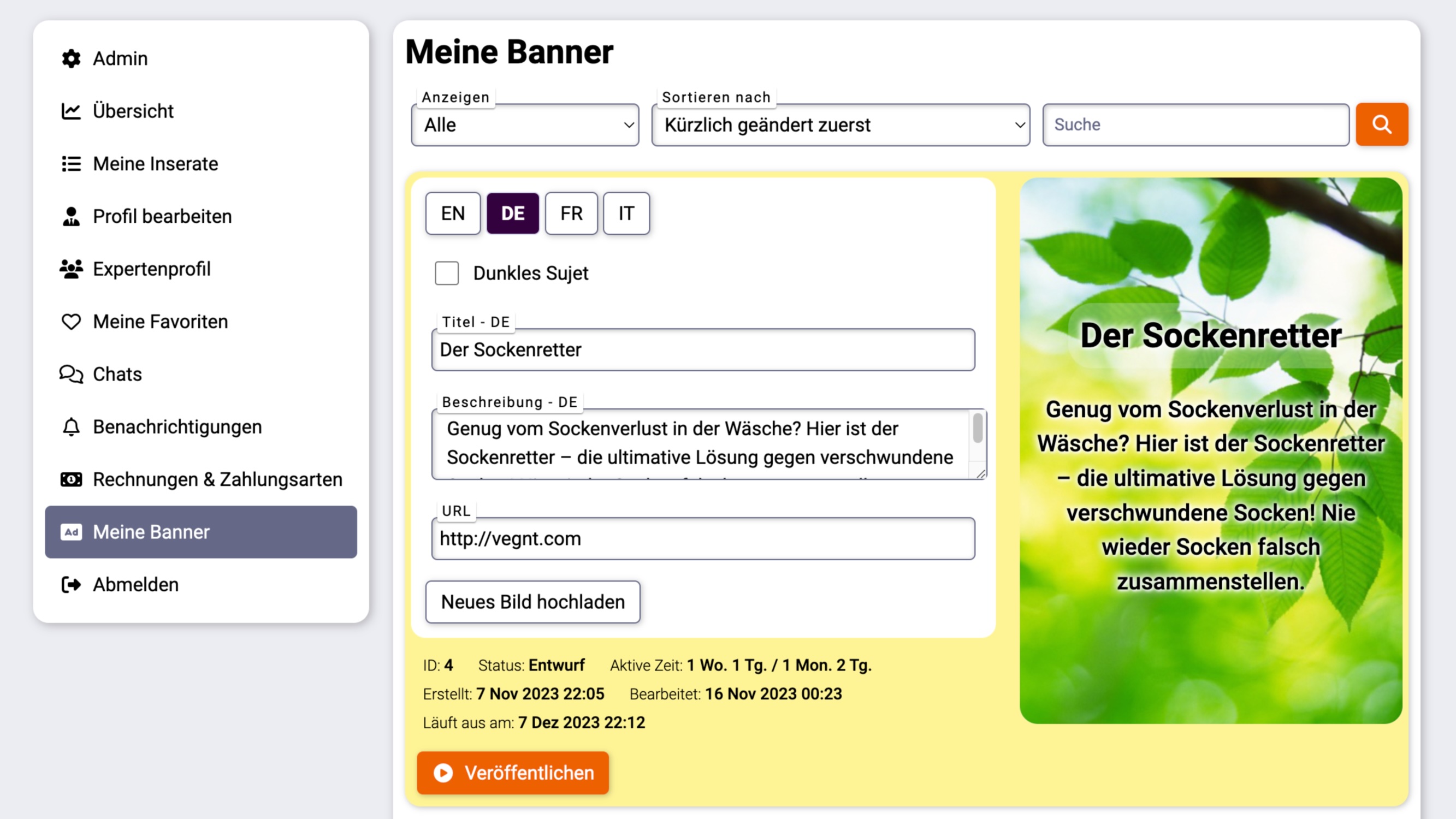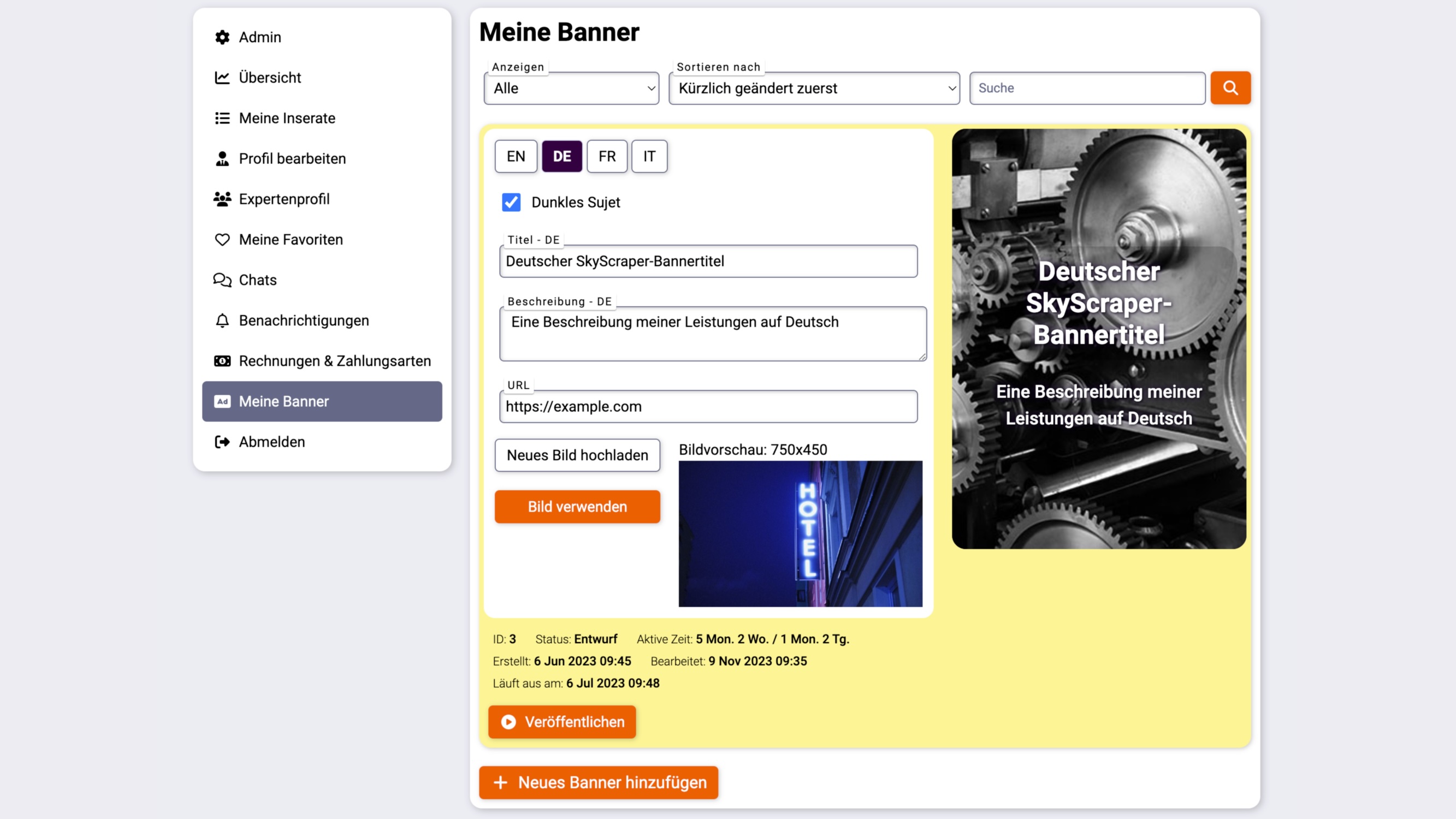 Create a skyscraper banner that will be displayed in the right sidebar for 30 days. Take advantage of this opportunity! A detailed description in German follows...